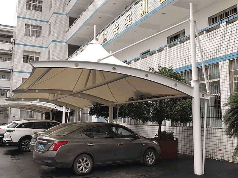 膜结构停车棚是一座雕塑,一件艺术品,给人美的视觉享受。其柔美,其曲线,其刚柔并济,其丰富造型,其洁白无瑕,让人眼前一亮,回味悠长。轻便性:重量轻,绝对保证棚下人和物的安全。但由于荷载作用下膜结构材...